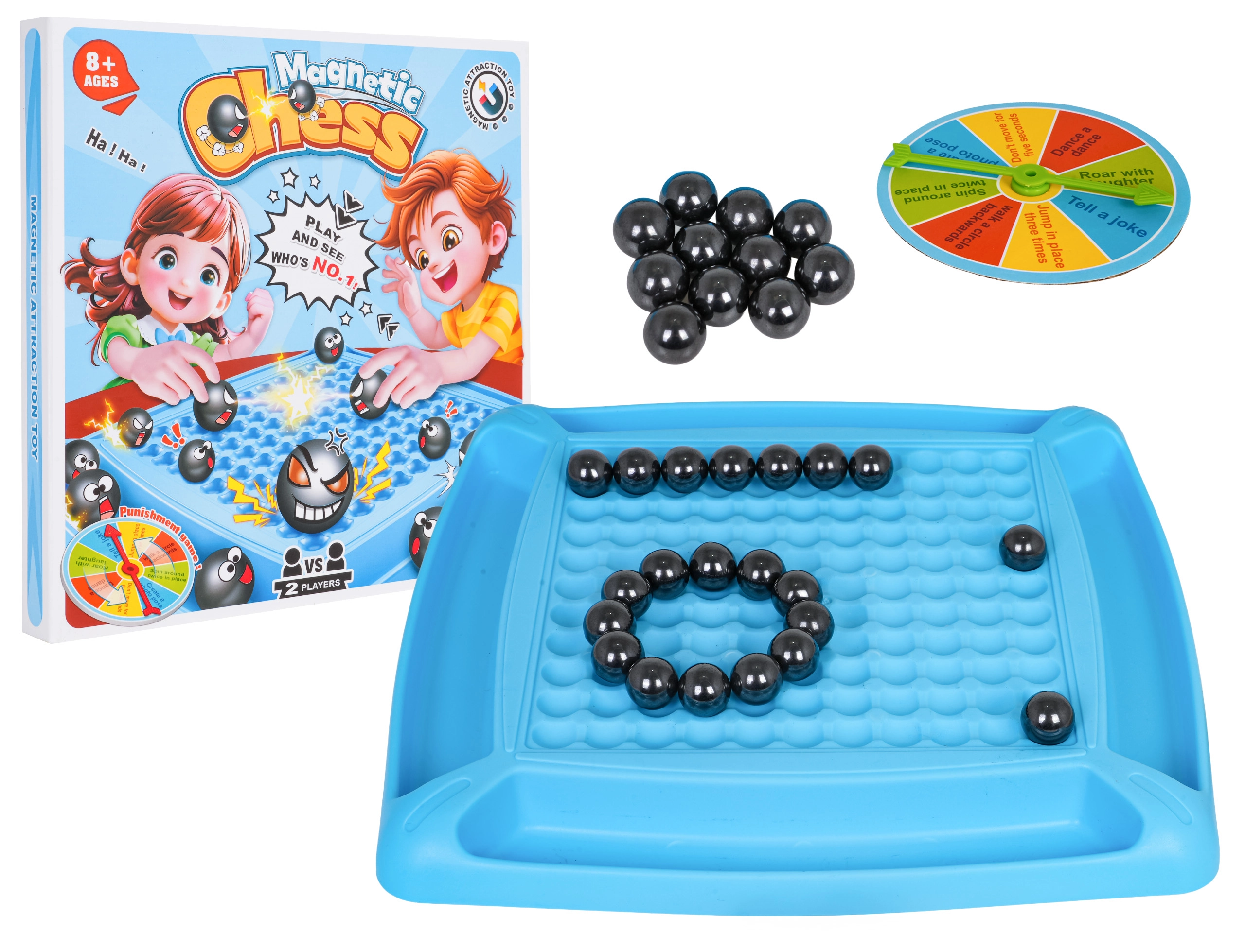 Die Regeln sind einfach: Beide Spieler arbeiten mit Magnetkugeln und verfolgen das Ziel der gewählten Variante. Der Verlierer dreht das Herausforderungsrad und nimmt eine spaßige Aufgabe an – Spannung und Lachen sind garantiert.