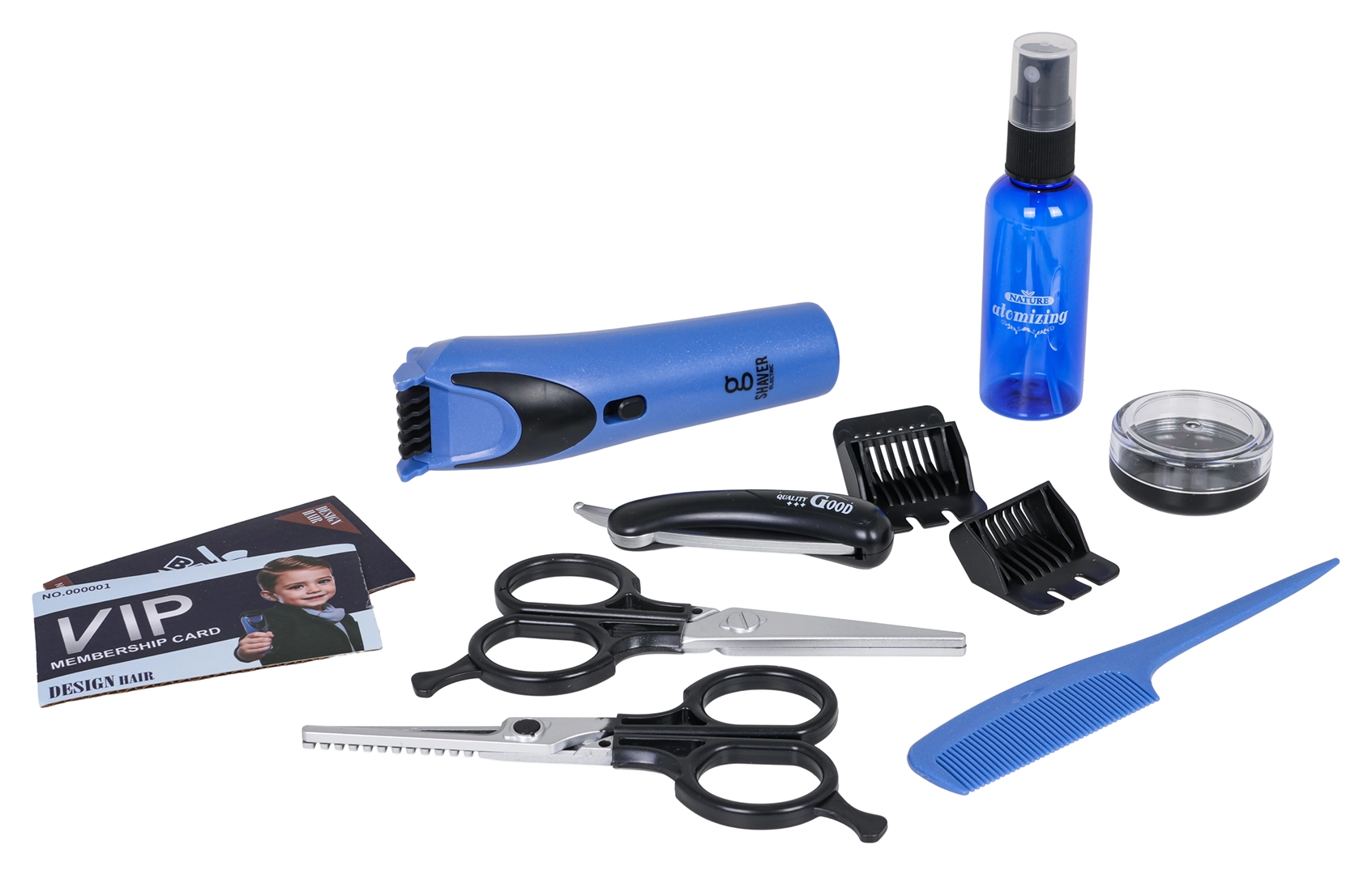 Der Star ist die Maschine mit Soundeffekten und beweglichen Klingen für ein realistisches Spielerlebnis. Dank 11 Zubehörteilen können Kinder den „Kunden“ komplett „bedienen“ – vom Haarschnitt über das Styling bis zur Bartpflege.