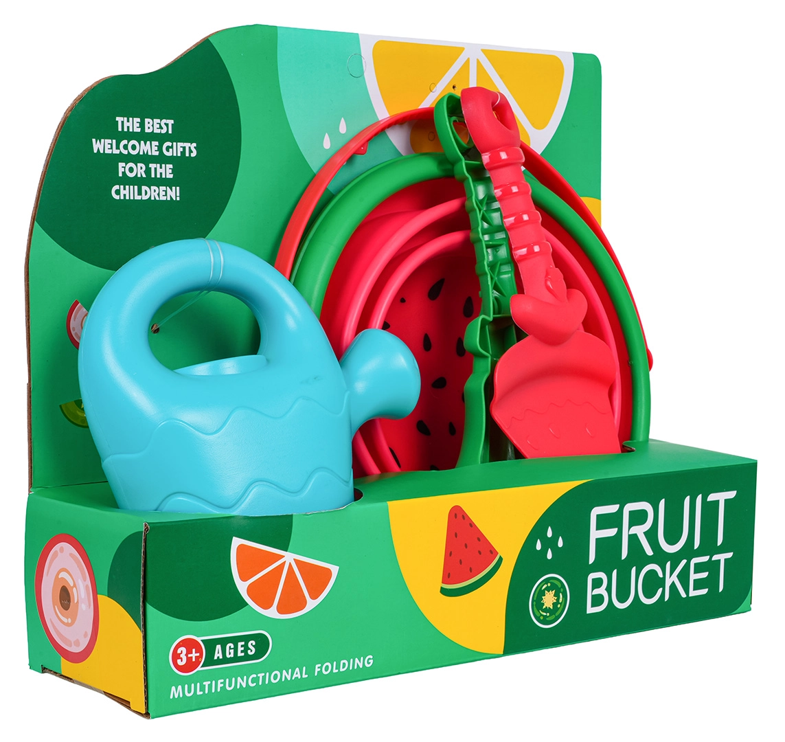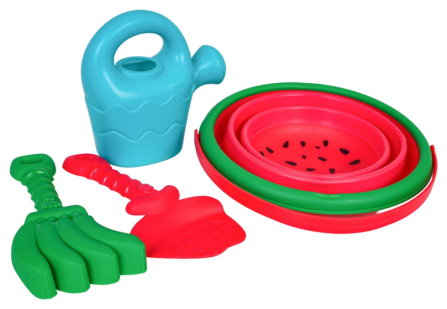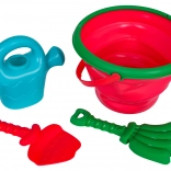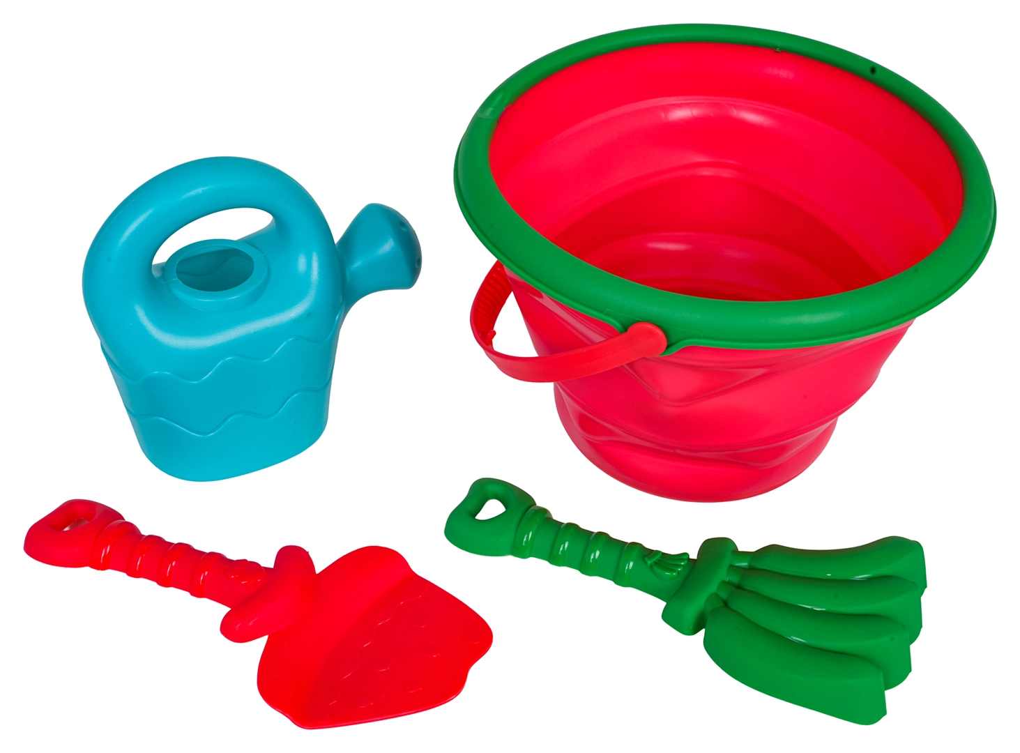 Entdecken Sie das praktische Sandspiel-Set, mit dem Spielen am Wasser und im Sandkasten noch mehr Spaß macht. Der faltbare Eimer aus robustem Kunststoff und Silikon lässt sich schnell zu einer kompakten Form zusammenfalten und passt in jede Tasche. Schaufel, Harke und Gießkanne sind für kleine Kinderhände gestaltet – leicht, sicher und mit glatten Kanten.