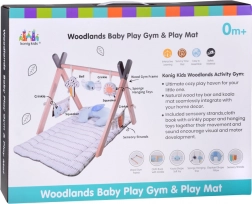 Der stilvolle Holz-Spielbogen bietet dem Baby eine bequeme Fläche in Bauch- wie Rückenlage, während weiche Hänge-Spielzeuge zum Ausstrecken, Greifen und Entdecken verschiedener Texturen einladen. Kontrastreiche Elemente, raschelnde Materialien und Quietsch-Elemente stimulieren auf natürliche Weise Sehen, Hören und Tastsinn.