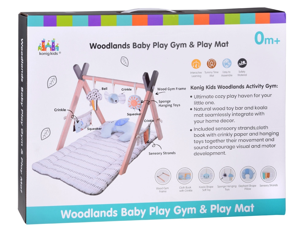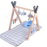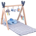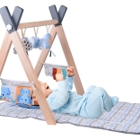 Stabiler A-Rahmen aus Naturholz mit mehreren Befestigungspunkten für Spielzeuge bietet eine feste und sichere Basis für das tägliche Spielen zu Hause und unterwegs.