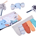 Enthalten sind eine weich gepolsterte Lernmatte, ein praktisches U-Kissen in Elefantenform für angenehme Unterstützung sowie ein buntes Set an Spielzeugen mit unterschiedlichen Oberflächen. Dank der einfachen Montage und der leichten Konstruktion lässt sich der Spielbogen schnell zusammenklappen und auf Reisen mitnehmen.