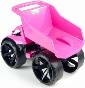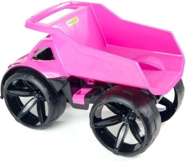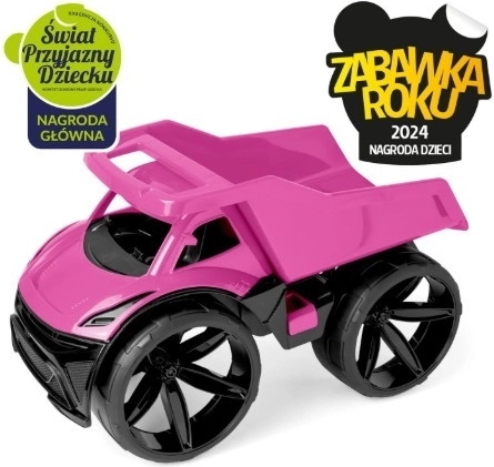 Der rosa Kipplaster MAXIMUS verbindet ansprechende Optik mit durchdachter Funktionalität. Dank des robusten, aber leichten Kunststoffs lässt er sich auch von kleineren Kindern leicht steuern, während die bewegliche Mulde realistisches Beladen und Entladen ermöglicht. Futuristische Linien, eine breite Stoßstange mit Wabenstruktur und schräg gesetzte „Scheinwerfer“ unterstreichen den modernen Charakter des Spielzeugs.