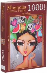 Entdecken Sie die Freude am Puzzeln mit einem 1000-Teile-Puzzle mit dem ikonischen Frida-Motiv. Dieses Format bietet eine angenehme Herausforderung für Anfänger wie auch für erfahrene Puzzlefans und ergibt nach dem Zusammensetzen ein dekoratives Bild mit den Maßen ca. 48 × 68 cm.