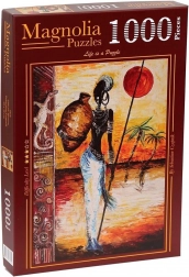 Begeben Sie sich auf eine kreative Reise mit dem Puzzle Afrikanerin 1000 Teile von MAGNOLIA. Detailreiche Illustration und hochwertiger Druck garantieren leuchtende Farben und ein angenehmes Puzzleerlebnis. Das fertige Bild wird zur stilvollen Dekoration Ihres Interieurs.