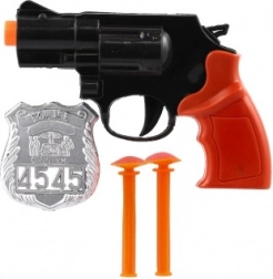 Dieses Polizei-Set bietet Kindern viel Spaß beim sicheren Rollenspiel. Die Kunststoffpistole mit orangener Spitze schießt weiche Saugnapfpfeile, die auf glatten Oberflächen haften. Ein detailreiches Abzeichen ergänzt das Set und macht jede Mission noch realistischer.