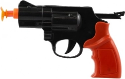 Die Kunststoffpistole mit orangener Spitze ist ideal für Kinderhände – leicht zu halten, zu bedienen und passt gut in den Rucksack.