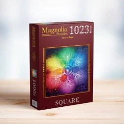 Dieses ästhetische Puzzle mit einem Mandala-Motiv der sieben spirituellen Ebenen ist ideal für Momente der Entspannung und zum Training der Konzentration. Das quadratische Format von ca. 60 × 60 cm wirkt sowohl an der Wand als auch auf einer Puzzlematte, während 1023 präzise geschnittene Teile einen flüssigen und zufriedenstellenden Puzzleablauf gewährleisten.