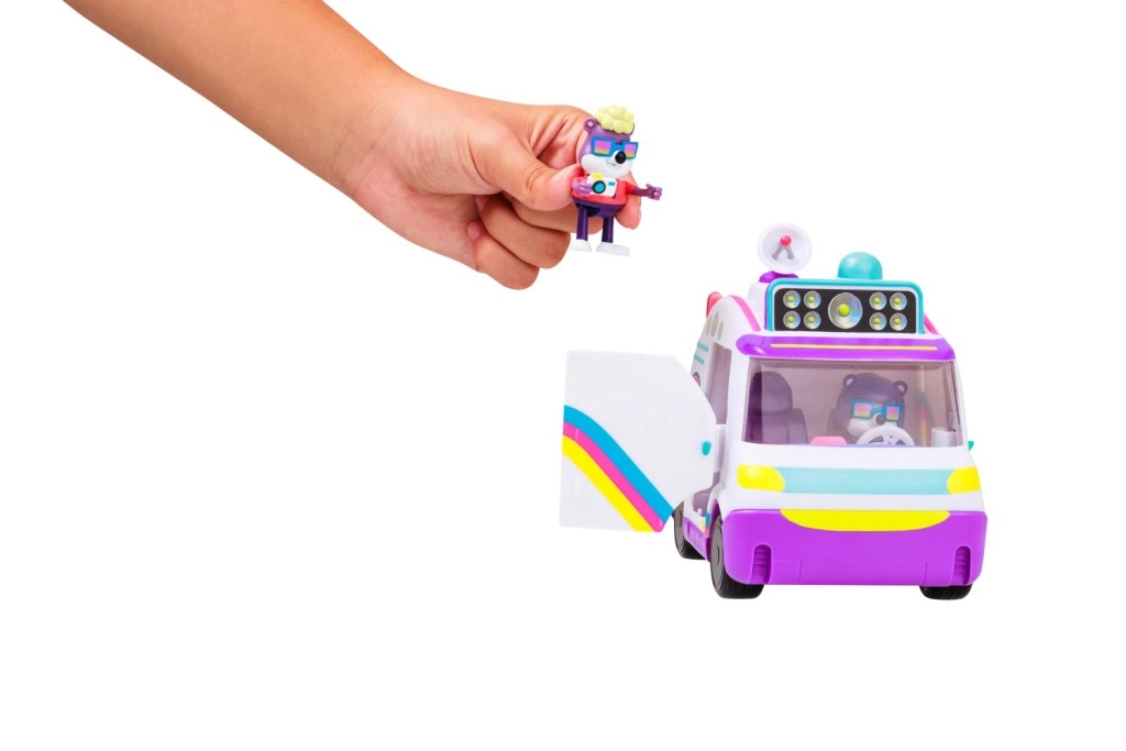 Enthalten ist eine exklusive Figur mit Zubehör, die die Spielmöglichkeiten erweitert und die Fantasie anregt. Der Van bietet ein detailliertes Interieur, bewegliche Räder und ein auffälliges Farbdesign mit Regenbogen-Elementen. Das Set ist mit weiteren Figuren der Serie Tierfälle kompatibel, sodass du dir ganz leicht ein komplettes Team zusammenstellst.
