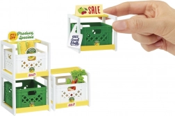 Stapelbare Ständer, Kisten und Schilder „NEW“ und „SALE“ ermöglichen es dir, das Erscheinungsbild des Shops, der Bäckerei oder des Bauernmarktstands schnell zu verändern.