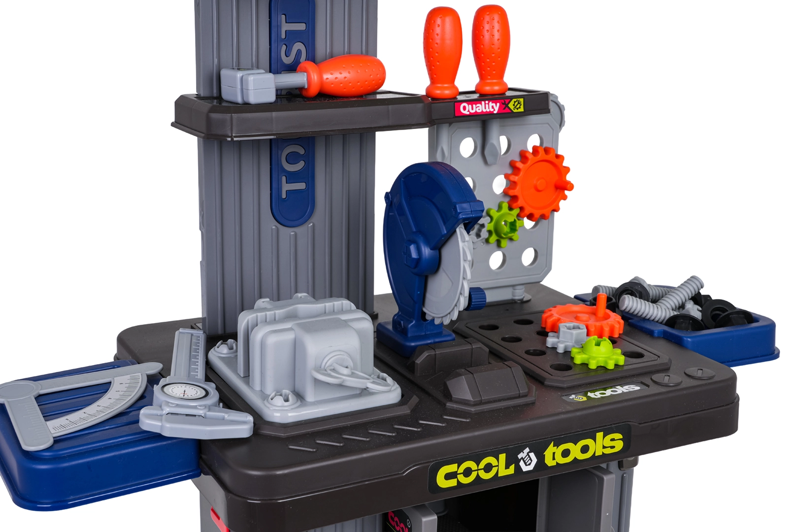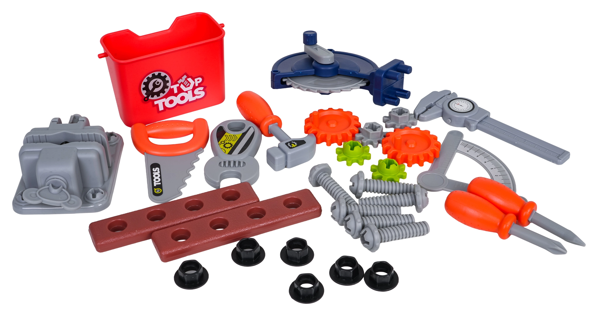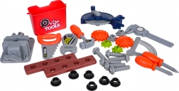 Der Lieferumfang fördert Feinmotorik, logisches Denken und Rollenspiele. Dank Zahnrädern, Messwerkzeugen und Schraubelementen lernen Kinder die Grundlagen des „Heimwerkens“ sicher und spielerisch kennen.