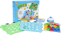 Dieses fesselnde Kinderspiel mit Krabben verbindet Lernen und Wettbewerb. Kinder wählen eine Vorlagenkarte, setzen bunte Formen in die Öffnungen des Brettes und trainieren Logik, Wahrnehmung und Hand-Auge-Koordination. Im Spiel zu zweit entscheidet die Geschwindigkeit – wer das Muster zuerst fertigstellt und das Glöckchen drückt, gewinnt die Karte.