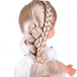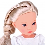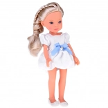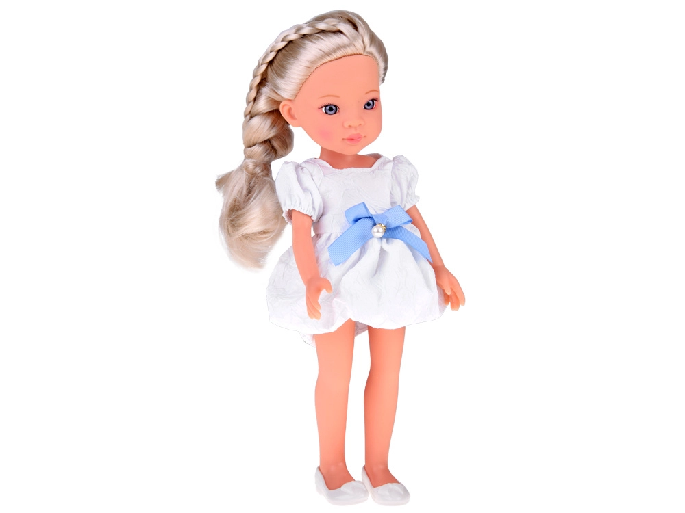 Zum Set gehört ein reizendes weißes Kleid mit blauer Schleife und feiner Perlenverzierung sowie weiße Ballerinas. Das detailliert geformte Gesicht mit ausdrucksstarken, funkelnden Augen verleiht der Puppe einen realistischen Ausdruck und macht sie zu einer schönen Begleiterin fürs Kinderzimmer wie auch für Sammlungen.