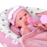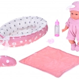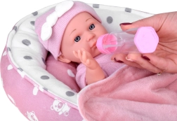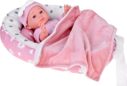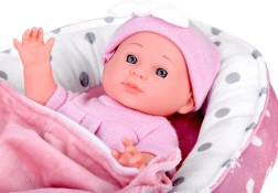 Diese Babypuppe ist für liebevolle Pflege-Rollenspiele konzipiert. Dank realistischer Gesichtszüge, dem weichen rosa Outfit sowie beweglichen Armen und Beinen genießen Kinder stundenlange kreative Unterhaltung. Das kuschelige textile Nestchen mit Kissen und Decke bietet dem Baby einen bequemen Platz zum Schlafen.
