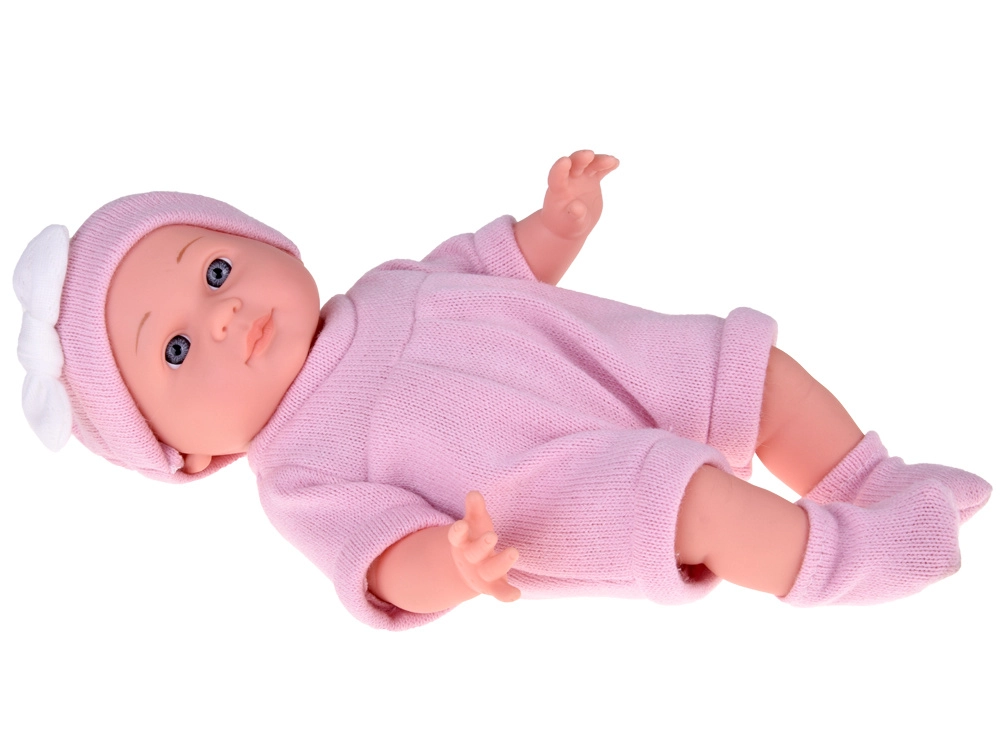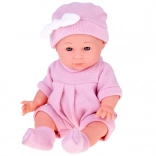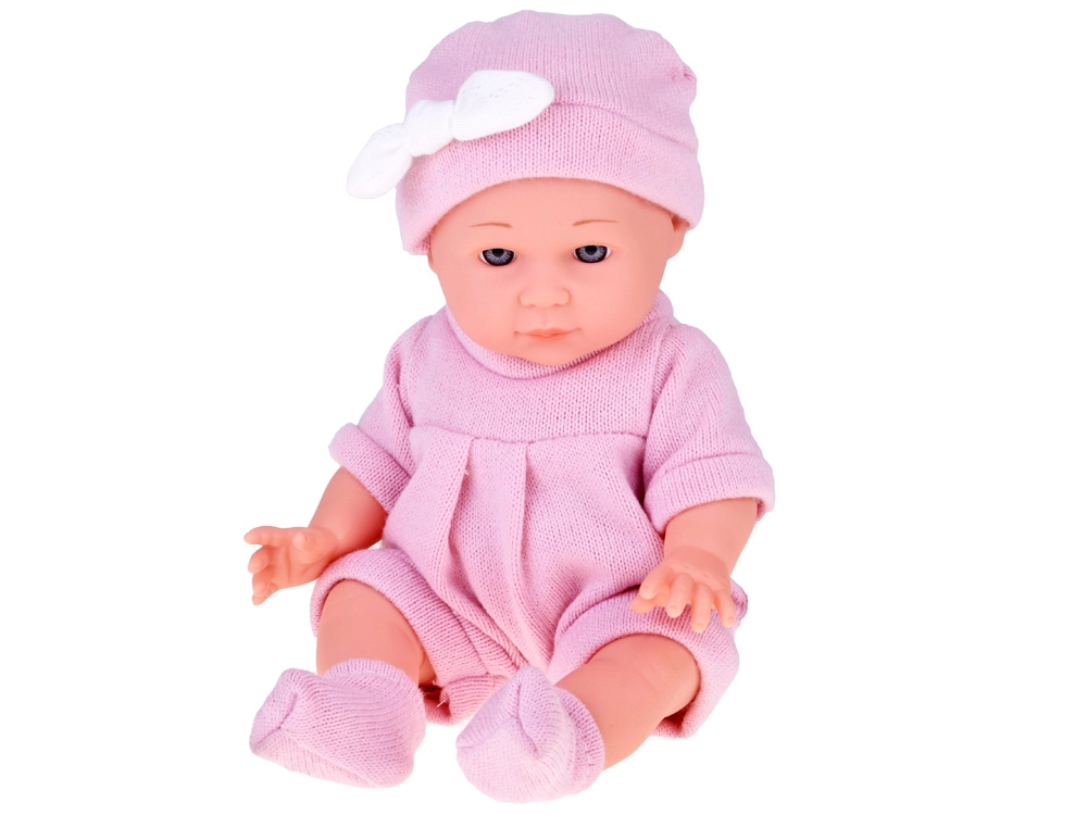 Die Puppe hat ein detailliertes Gesicht, bewegliche Gliedmaßen und eine niedliche Mütze mit Schleifchen. Die Kleidung ist abnehmbar und angenehm anzufassen.
