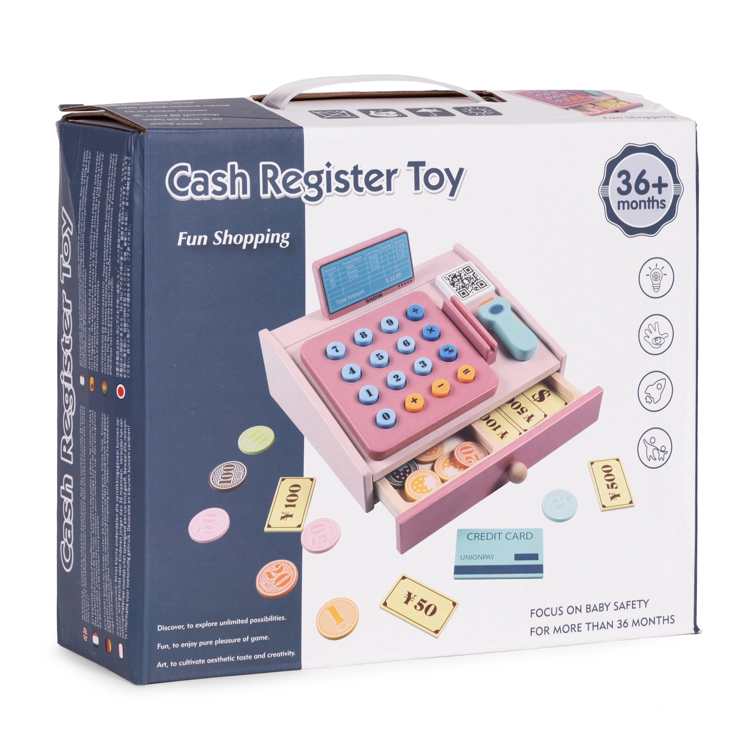 Die sichere Ausführung mit glatten, abgerundeten Kanten ist für Kinder ab 3 Jahren geeignet. Im Lieferumfang enthalten sind Holz‑Münzen und -Scheine sowie eine Zahlungskarte, damit dem sofortigen Spielspaß nichts im Wege steht. Die Kasse fügt sich schön in moderne Interieurs ein und sorgt für viele Stunden kreativer Unterhaltung.