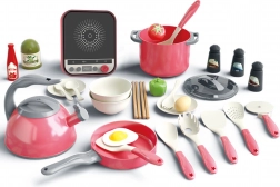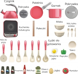 Im Set ist alles enthalten, was für das „Kochen“ eines Mittagessens nötig ist – Töpfe mit Deckeln, eine Pfanne mit Spiegelei, Kännchen, Teller, Schüsseln, Besteck sowie Gemüse und Gewürze für ein komplettes kulinarisches Erlebnis. Dank des umfangreichen Zubehörs ist das Spiel anregend, unterhaltsam und fesselnd.