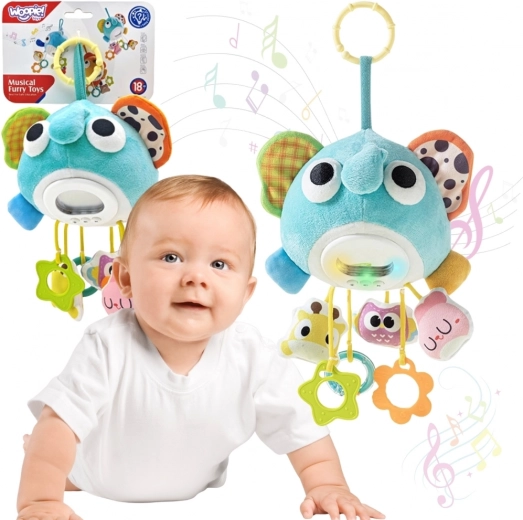 Am Körper des Elefanten sind 4 interaktive Anhänger befestigt – ein Beißring zur Linderung beim Zahnen und rasselnde Elemente zum Training von Greifen und Koordination. Kompakte Maße und eine robuste Schlaufe erleichtern das Aufhängen und Mitnehmen, sodass er sich sowohl für zu Hause als auch für unterwegs bestens eignet.