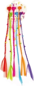 Haarklammern und Clips mit bunten Zöpfen, 30 cm, 6 Stk.