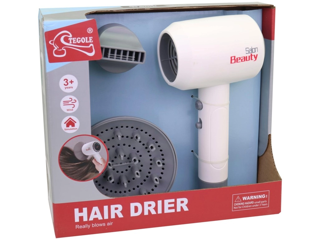 Der Fön ist leicht, liegt gut in kleinen Kinderhänden und ist ideal für die kindereigene Friseurecke. Die sichere Ausführung und die einfache Bedienung machen ihn zu einem großartigen Geschenk für Kinder ab 3 Jahren, die Erwachsene nachahmen und ihre Fähigkeiten weiterentwickeln möchten.
