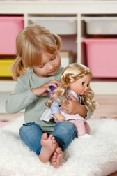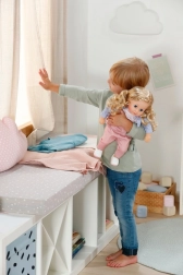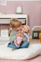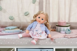 Zum Lieferumfang gehört ein komplettes Outfit: ein zartes Kleid mit leichter Jacke, bequeme Leggings und Schuhe. Dank beweglicher Gliedmaßen lässt sich die Puppe leicht hinsetzen und anziehen. Das Spiel mit der Puppe fördert Feinmotorik, Empathie und Vorstellungskraft – die ideale Wahl als erste Puppe für die Kleinsten.