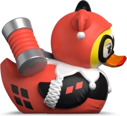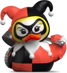 Diese Mini-Ente im HARLEY QUINN Design verbindet einen niedlichen Look mit einer Comic-Ikone. Dank der kompakten Maße passt sie perfekt ins Regal, auf den Schreibtisch oder in die Vitrine. Die glänzende Ausführung und die detailreiche Gestaltung des rot-schwarzen Kostüms machen sie zu einem auffälligen Sammlerstück.