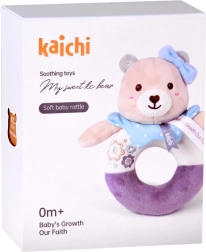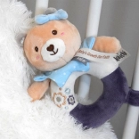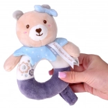 Die Bären-Plüschrassel wurde aus hochwertigen, sehr weichen Materialien gefertigt, die sich angenehm anfühlen. Die Ringform erleichtert das Greifen und Halten – ideal für die ersten Versuche des Babys, den Griff zu üben. Feine, aufgestickte Details (Augen, Schnäuzchen, Verzierungen) sorgen für maximale Sicherheit ohne kleine Teile.