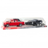 Dieses attraktive Set kombiniert einen roten Geländewagen mit Friktionsantrieb, einen abnehmbaren Anhänger und einen eleganten schwarzen Sportwagen. Dank realistischer Verarbeitung, glänzender Oberfläche und detailreicher Elemente wirken die Spielzeuge glaubwürdig und fördern kreative Szenarien – vom Fahrzeugtransport bis zu spannenden Rennen.