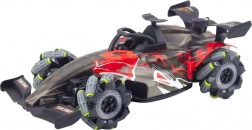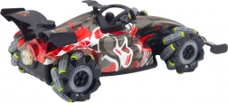 Die spezielle Radkonstruktion ermöglicht Bewegung in alle Richtungen und 360°-Drehungen, sodass dynamische Tricks und präzise Manöver mühelos gelingen. LED-Lichter sorgen besonders in der Dämmerung für stimmungsvolle Effekte. Das Auto wird von einem 3,7-V-Li-Ion-Akku (im Lieferumfang) betrieben, das Laden erfolgt über USB. Der Sender benötigt 2× AA (nicht enthalten).
