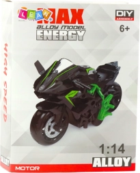 Metall-Motorrad zum Zusammenbauen 1:14 grün–orange DIY