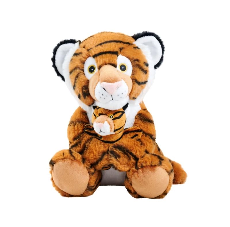 Jedes Tier (Panda, Koala, Tiger oder Eisbär) ist ca. 28 cm groß und überzeugt mit realistischen Farben und feinster Verarbeitung. Das Elternteil mit Jungtier fördert Rollenspiele, stärkt die Fantasie und lehrt Kinder Fürsorge und Empathie.