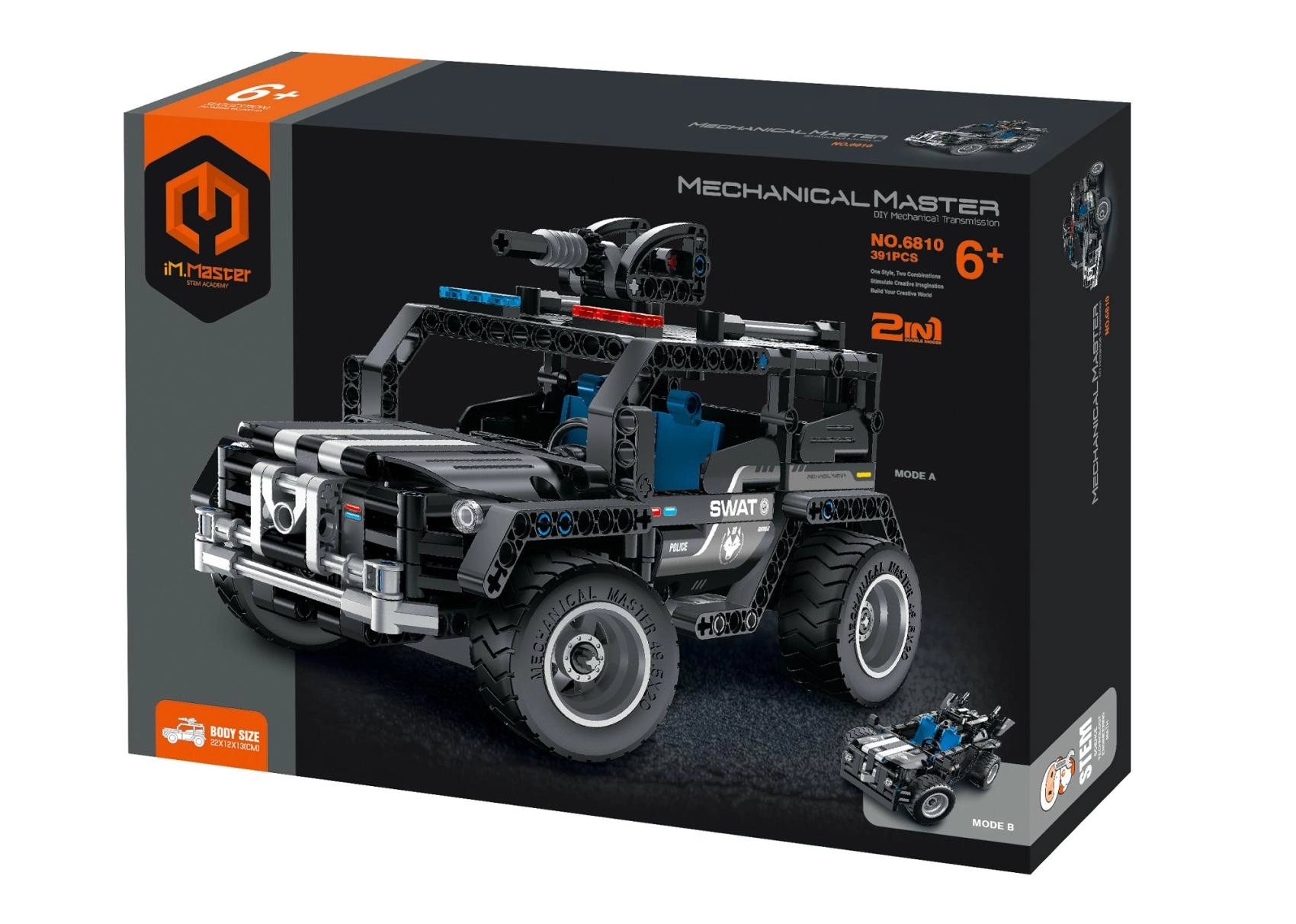 Entdecken Sie Bauspaß und Spielvergnügen in einem. Mit dem iM.MASTER Baukasten bauen Sie Ihr eigenes funktionsfähiges Geländewagen-Modell, und das gleich in zwei Varianten. Dank durchdachter Teile und der beiliegenden Anleitung ist der Aufbau übersichtlich und motivierend – für kleine wie größere Konstrukteure.