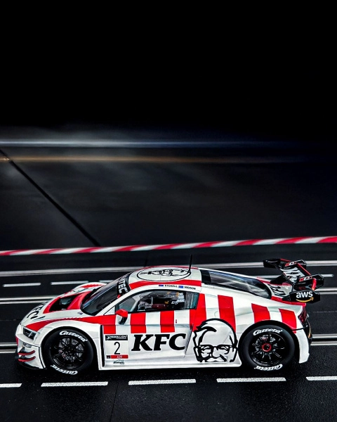 Genießen Sie erstklassige Fahrleistungen mit dem Audi R8 LMS GT3 evo II für CARRERA Digital 124. Präzise ausgearbeitete Karosserie, helle Beleuchtung und stabile Fahreigenschaften machen dieses Modell zur idealen Wahl für Rennen zu Hause und auf der Clubbahn.