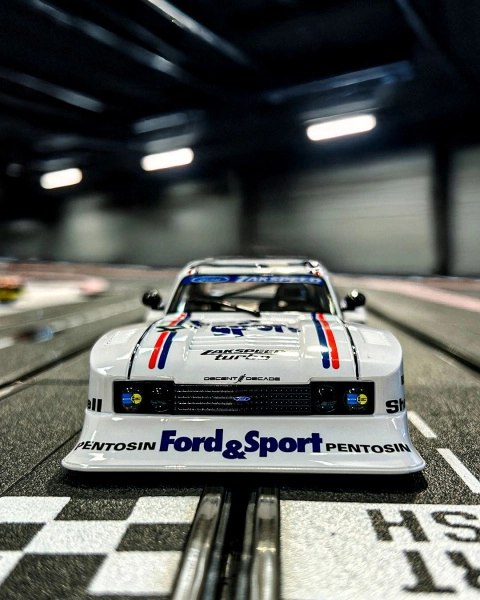 Das ikonische Rennfahrzeug Ford Capri Zakspeed in der Ausführung für Carreraslotbahnen Digital 124 bietet einen realistischen Look, detailgetreue Verarbeitung und eine zuverlässige Fahrdynamik. Dank funktionierender Beleuchtung, starkem Magneten und hochwertigen Schleifern meistert er schnelle Passagen und lange Stints ohne Leistungseinbußen.