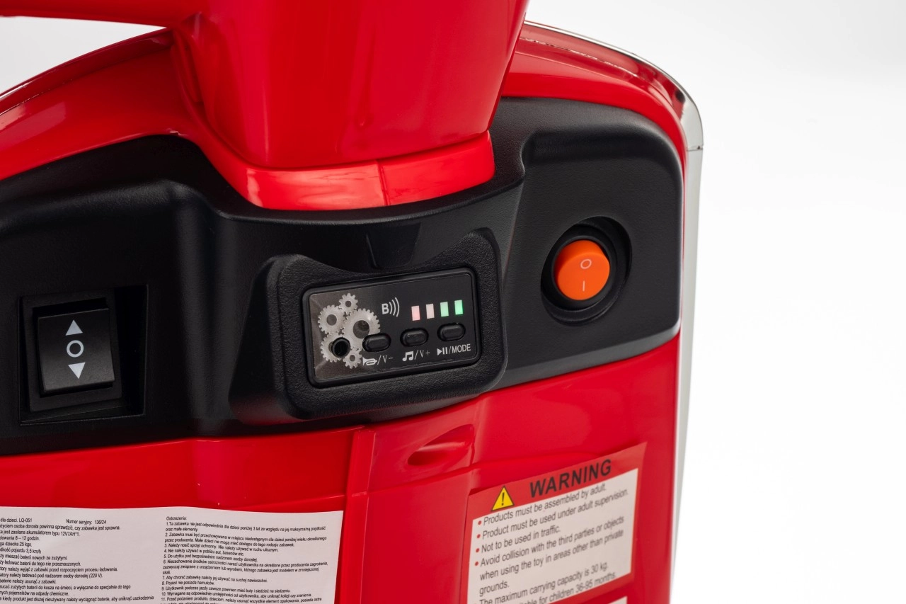 Kleine Fahrer genießen Entertainment mit dem integrierten Audiopanel – spielen Sie Lieblingssongs über Bluetooth, MP3 oder AUX. Am Lenker befinden sich Soundtasten und Hupe, der Sitz aus Kunstleder sorgt auch bei längeren Fahrten für Komfort. Zudem hält Sie die Batteriestandsanzeige darüber auf dem Laufenden, wann es Zeit zum Aufladen ist.