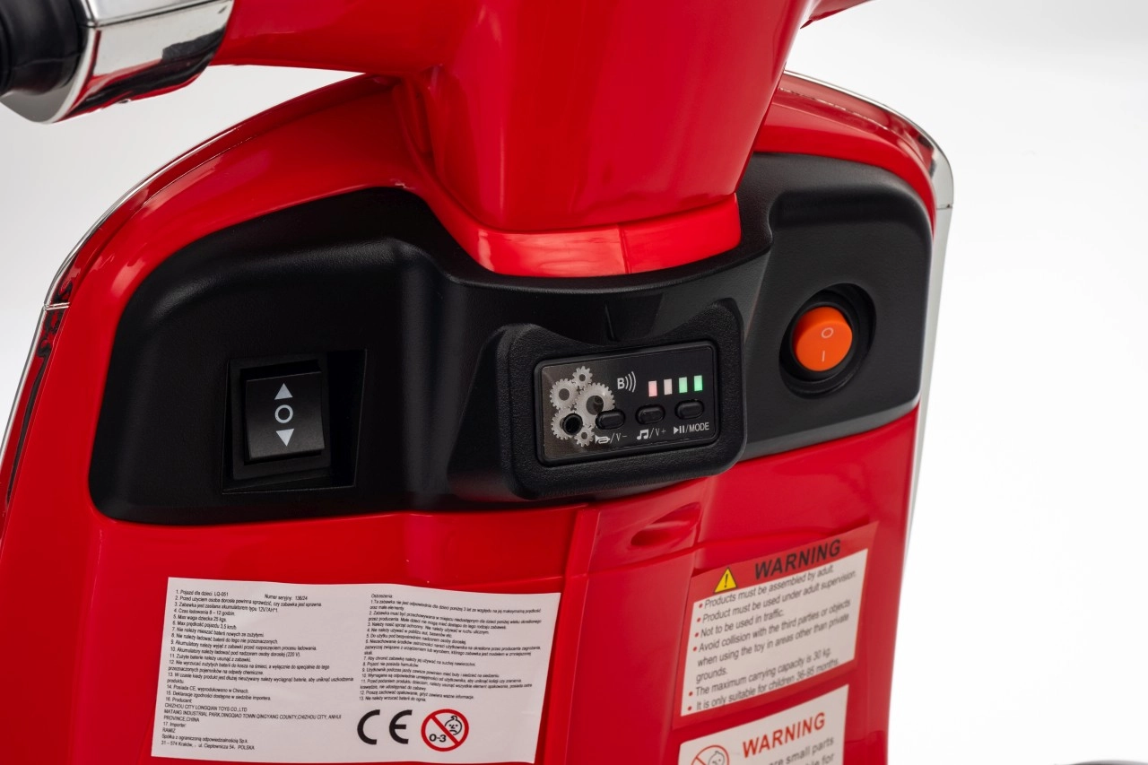 Der Kinderroller VESPA ROMA in Rot bietet ein authentisches Fahrerlebnis in kindgerechter, sicherer Ausführung. Dank sanftem Anfahren, Vorwärts- und Rückwärtsfahrt sowie hochwertigen EVA-Rädern ist die Fahrt komfortabel und leise. Praktische LED-Lichter erhöhen die Sichtbarkeit und verleihen dem Fahrzeug einen realistischen Look.