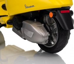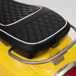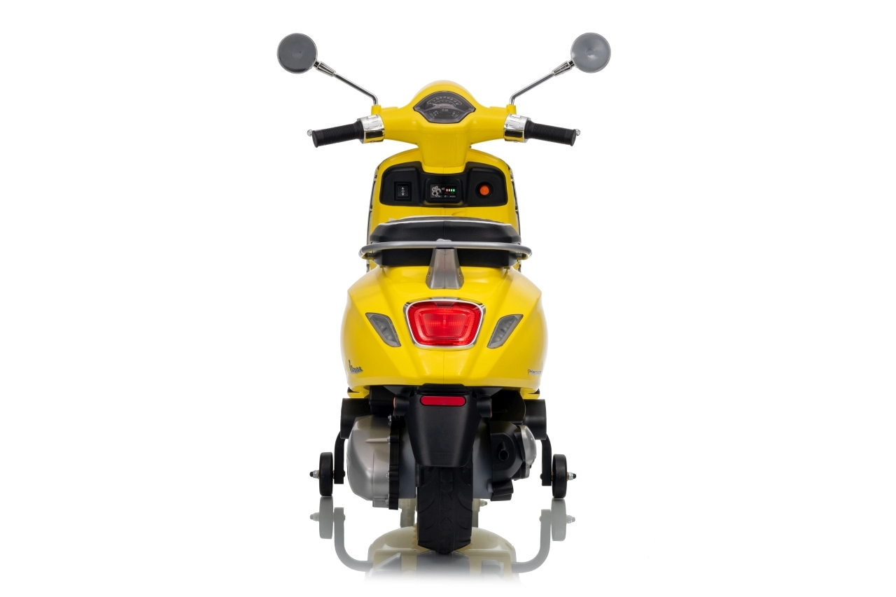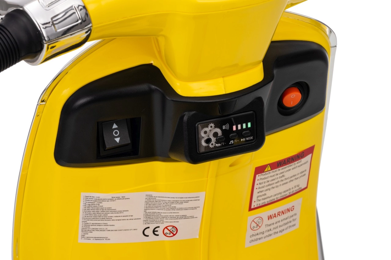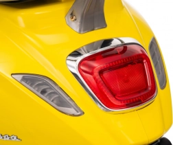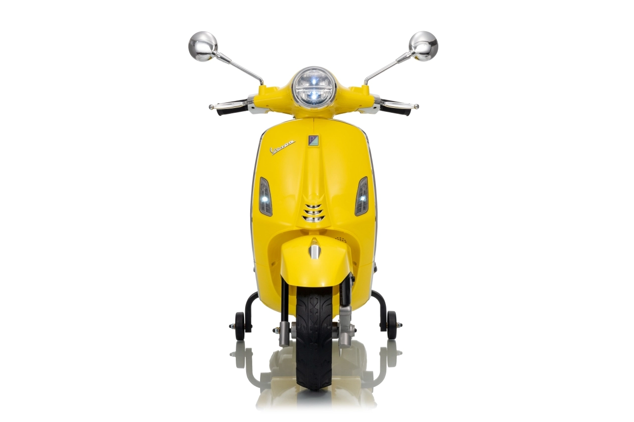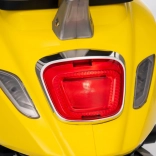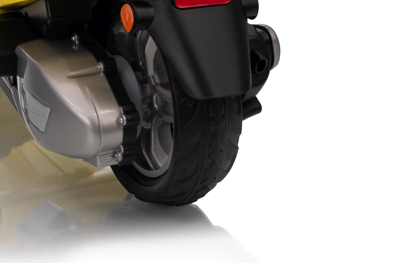 Das integrierte Audio-Panel mit MP3, Bluetooth und AUX spielt Lieblingslieder ab, am Lenker befinden sich Tasten für Sounds und Hupe. Helle LED-Lichter vorne und hinten erhöhen die Sichtbarkeit und verleihen den authentischen Look einer echten VESPA.