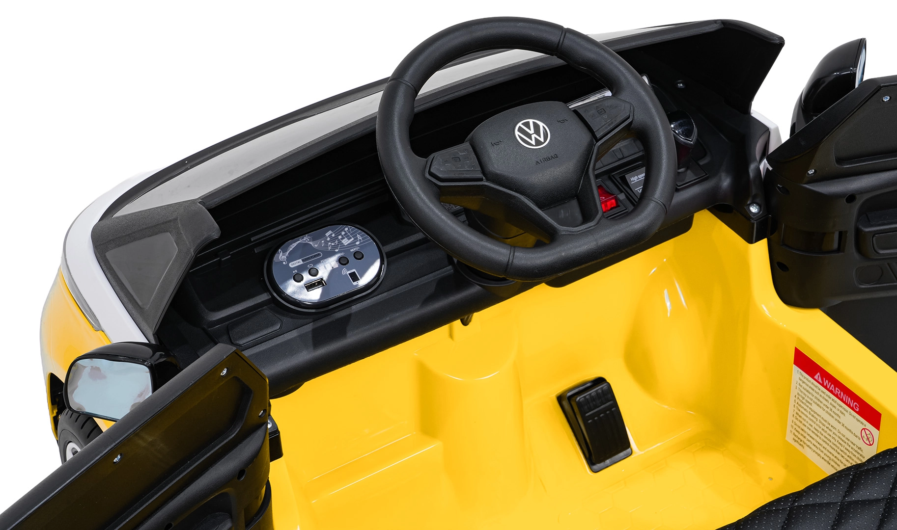 Der kleine Fahrer wird das ikonische Design des VOLKSWAGEN ID. BUZZ und die durchdachten Innenraumdetails mit Lenkung, Armaturenbrett und realistischen Bedienelementen lieben. Dank zwei 2×45-W-Motoren und der 12 V / 10 Ah Batterie ermöglicht das Auto sanftes Anfahren, zwei Geschwindigkeiten sowie Vorwärts- und Rückwärtsfahrt. EVA-Schaumreifen dämpfen Unebenheiten, während die Federung vorne und hinten zusätzlichen Komfort auf jedem Untergrund bietet.