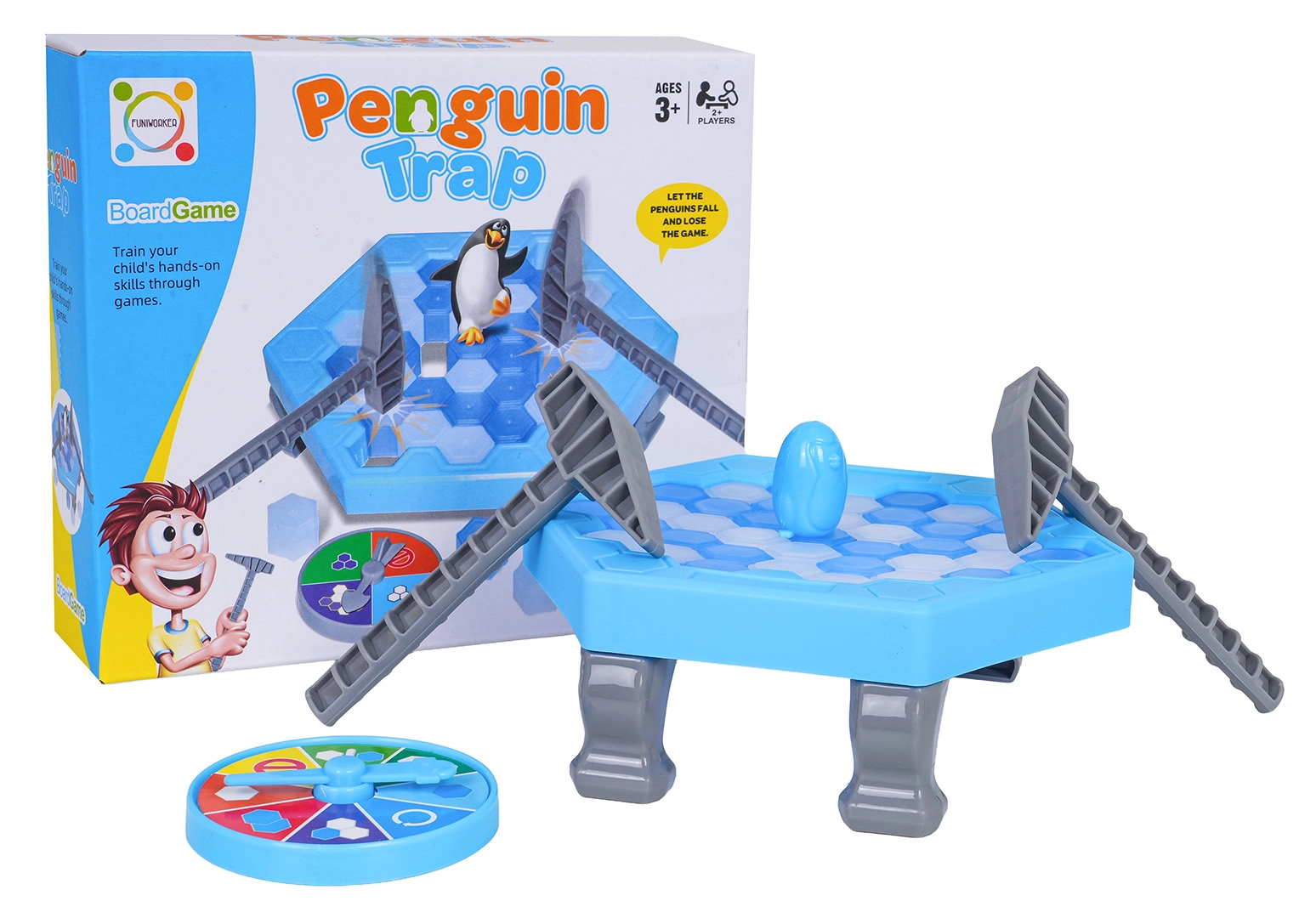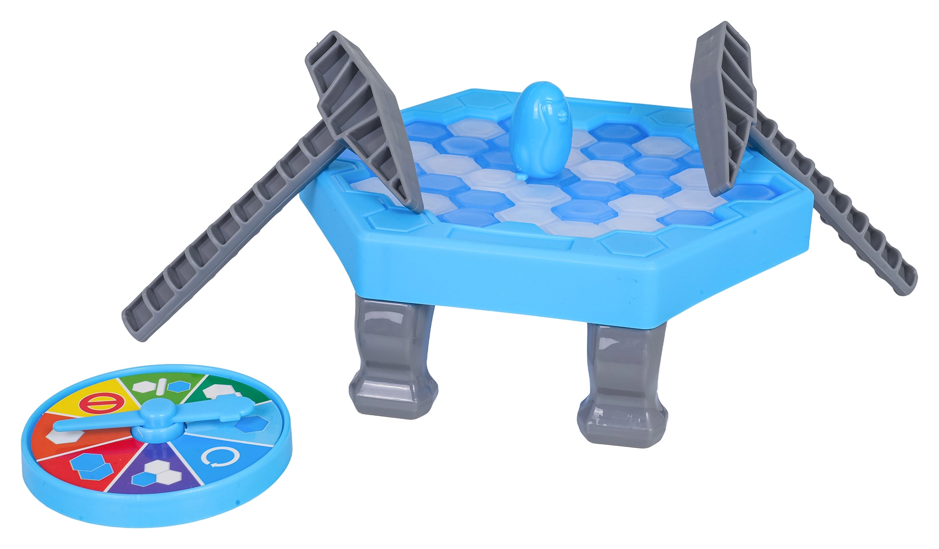 Pinguin auf dem Eis ist ein fesselndes Geschicklichkeitsspiel für Klein und Groß. Auf einer sechseckigen, frostigen Fläche klopft ihr mithilfe der Hämmerchen die Eisstücke gemäß dem Ergebnis auf dem Drehrad heraus. Wer dafür sorgt, dass der Pinguin herunterfällt, verliert – die Spannung steigt mit jedem Zug!