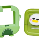 Das Entchendesign lieben Kinder. Die Schutzhülle mit Gurt erleichtert den Transport und schützt das Gerät unterwegs.
