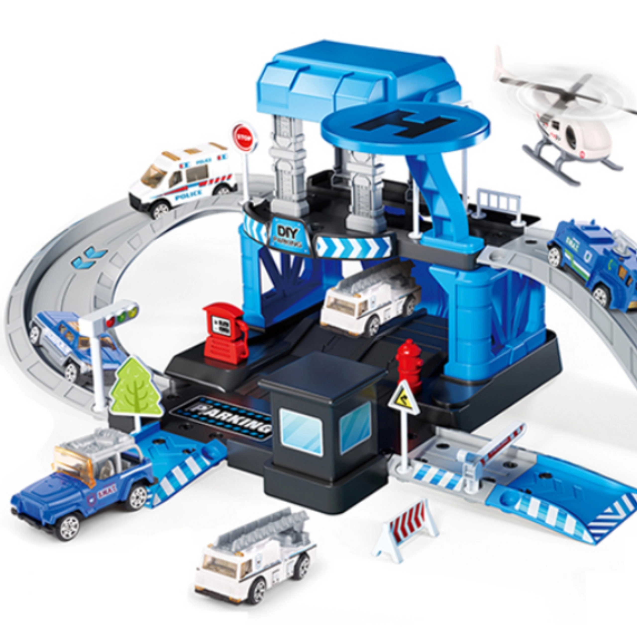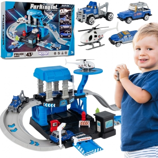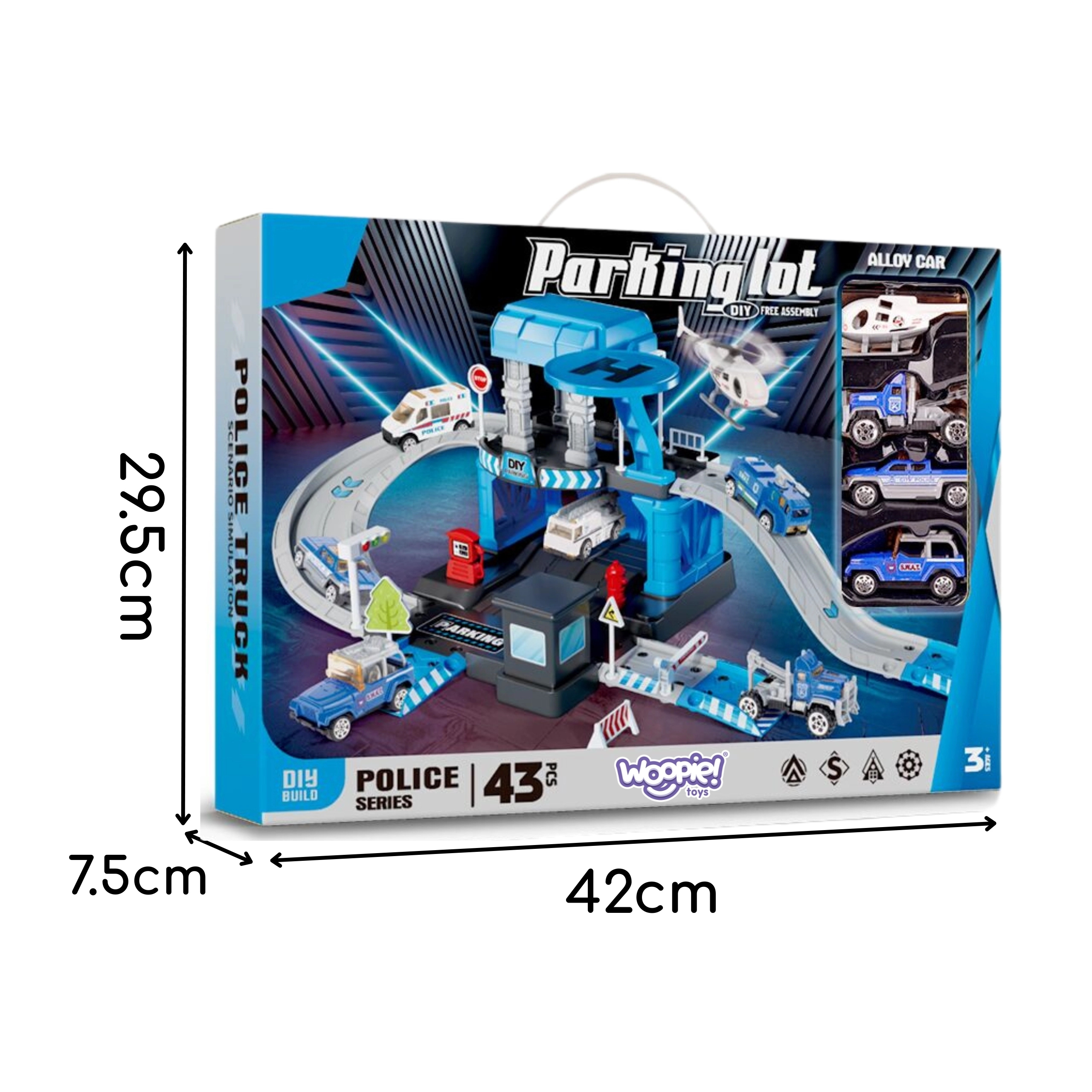Erschaffe deine eigene Polizeistadt! Dieser zweistöckige Parkhauskomplex mit Kommissariat bietet Rampen, Abfahrten und einen Landeplatz für den Hubschrauber. Dank realistischer Details wie Tankstelle, Schranken, Verkehrszeichen, Ampeln und Wachhäuschen denken sich Kinder im Handumdrehen unzählige Geschichten und Missionen aus.