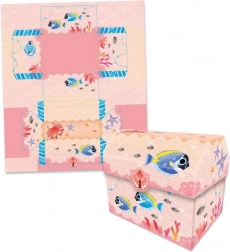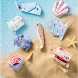 Aus den vorgedruckten Papieren falten Sie mühelos Fische, eine Schildkröte, eine Krabbe, ein Seepferdchen sowie kleine Schachteln und Schatzkistchen.