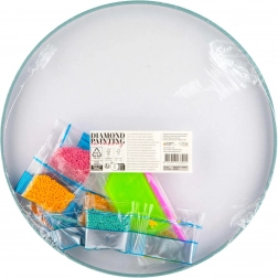 Entdecken Sie entspannendes Kreativsein mit dem Diamantmalerei-Set auf einer runden Leinwand mit 30 cm Durchmesser. Das Mandala-Motiv mit Blume in Grüntönen bringt Harmonie und Stil in jedes Interieur. Ideal für Anfänger und Fortgeschrittene – ein Projekt, das entspannend, leicht zu bewältigen ist und als Ergebnis eine strahlende Dekoration mit dem Effekt funkelnder Steinchen liefert.