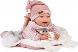 Arme und Beine sind an Gelenken befestigt – die Puppe kann sitzen und leicht die Position wechseln. Der weiche Stoffkf6rper ist sanft und angenehm ffcr le4ngeres Spielen.