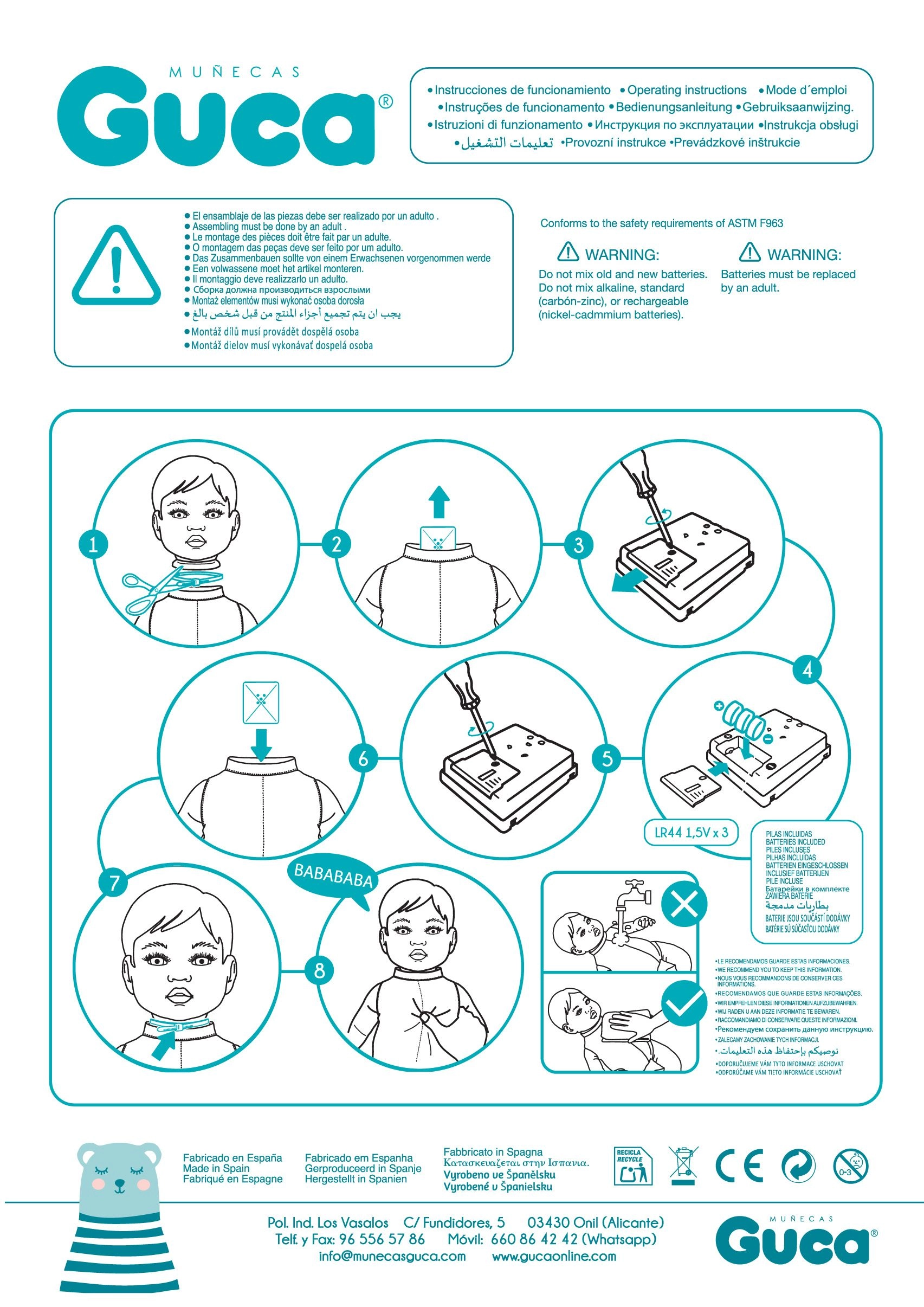 Die Puppe wird in Spanien handgefertigt und überzeugt durch Liebe zum Detail und Qualität. Sie wird in einer Geschenkbox geliefert und ist somit ein ideales Geschenk. Im Lieferumfang enthalten sind außerdem 3 Knopfzellen LR44 sowie eine Anleitung zum Batteriewechsel.