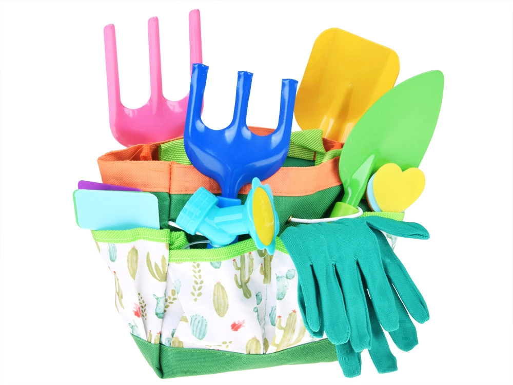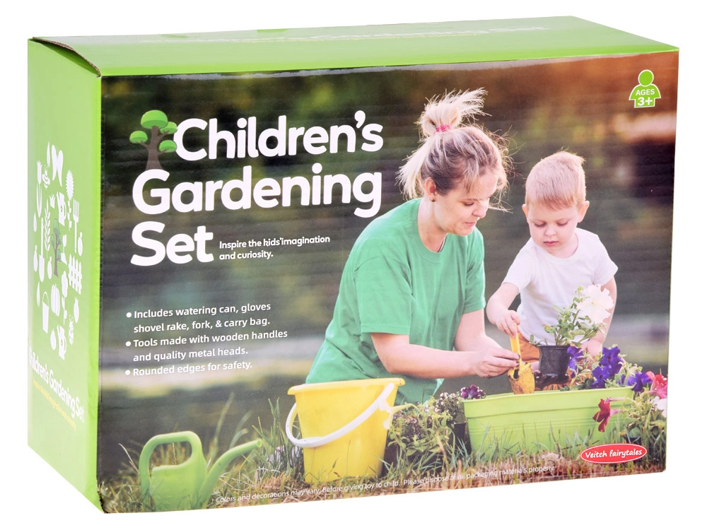 Robuste und leichte Werkzeuge mit farbigen Griffen sind auf Kinderhände abgestimmt und fördern die Feinmotorik. Spielerisch erlernen Kinder die Grundlagen der Pflanzenpflege, üben Geduld und Verantwortungsbewusstsein und beobachten, wie ihre Arbeit Früchte trägt.
