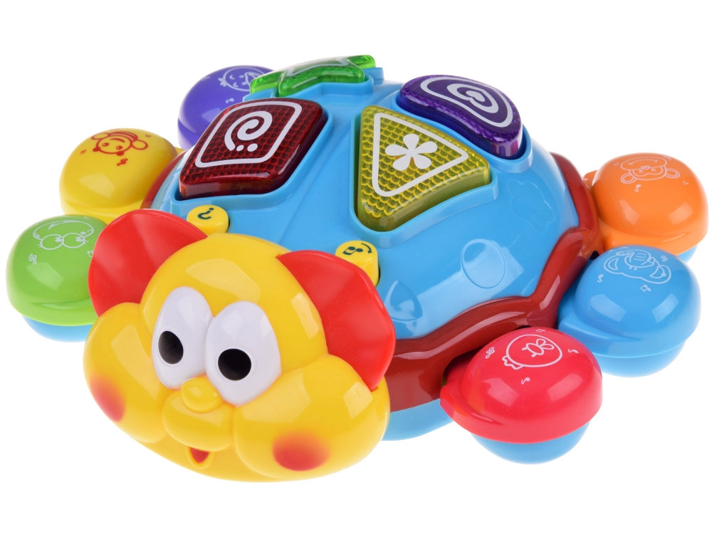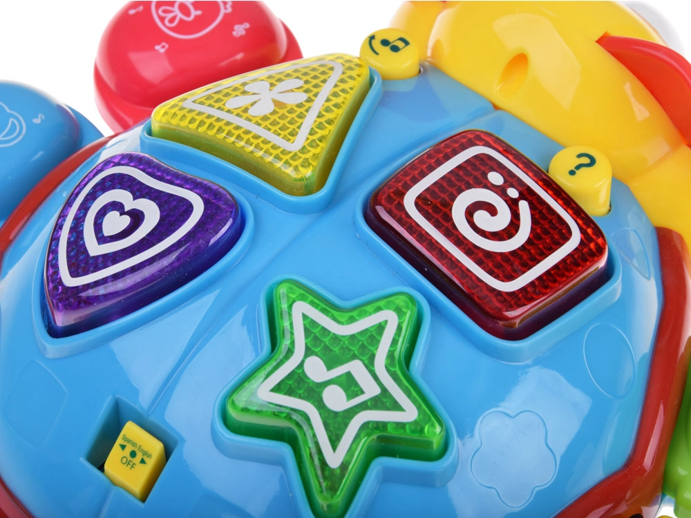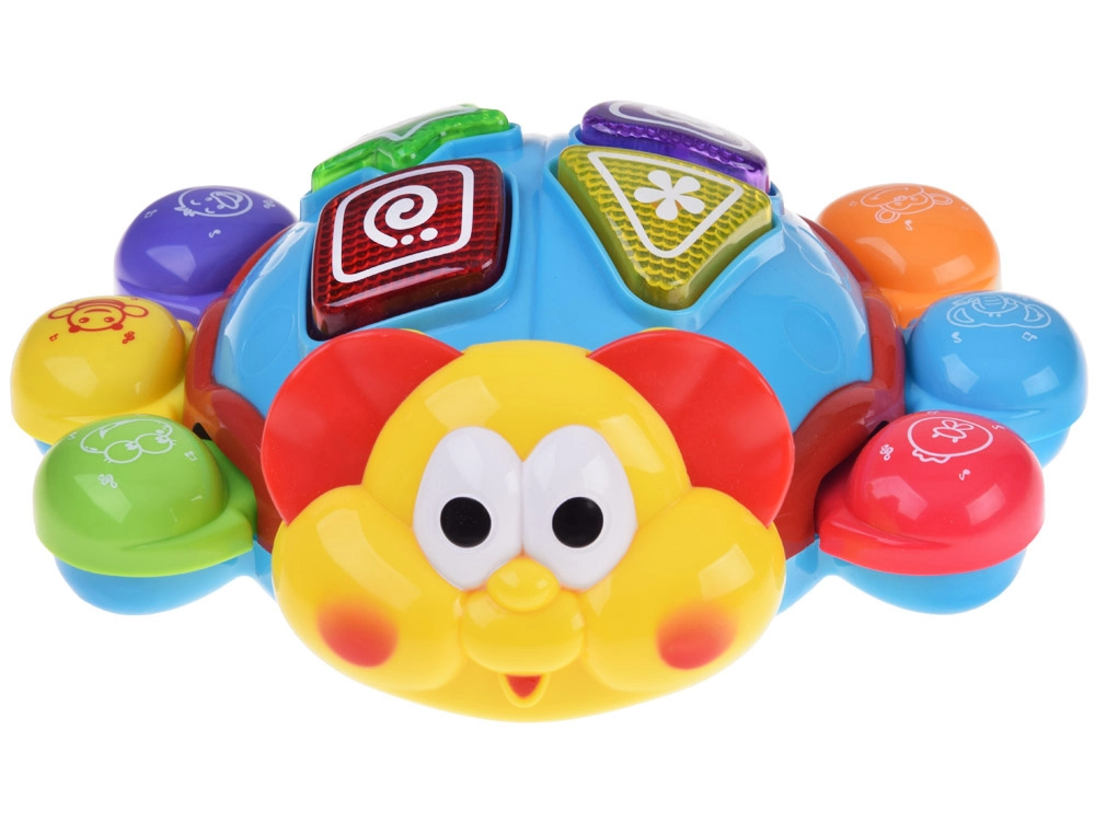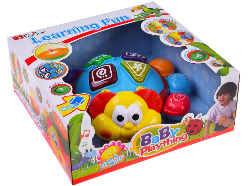 Farbenfroher interaktiver Käfer motiviert Kinder zum Krabbeln und Hinterherkriechen, spielt fröhliche Melodien, blinkt mit Lichtern und ändert dank intelligentem Hindernissensor die Richtung. Durch Drücken der großen Tasten lernen Kinder Farben, Tiere und das Prinzip von Ursache–Wirkung. Ideales Spielzeug für aktive Unterhaltung und die Förderung der Feinmotorik.