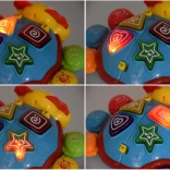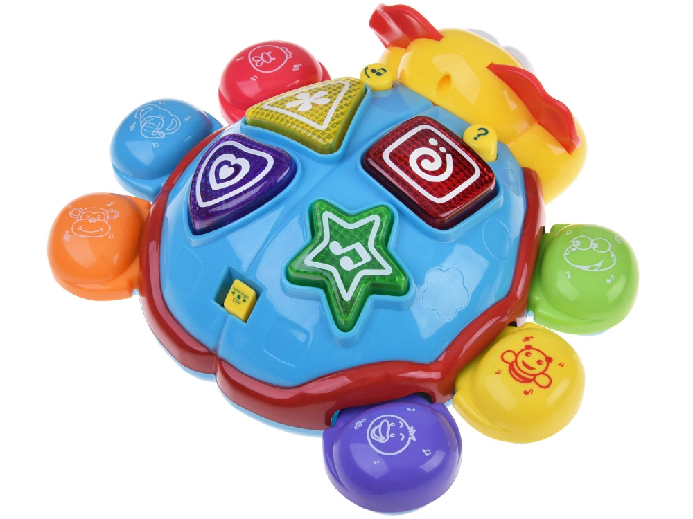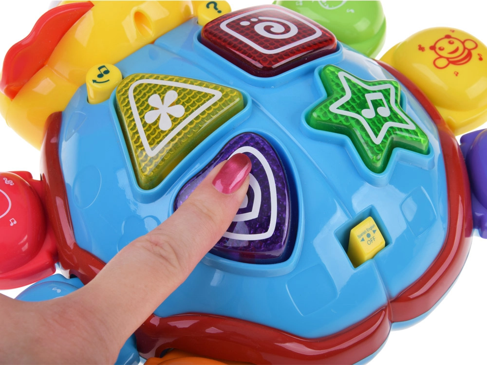 Die Taste mit der Note startet fröhliche Melodien, begleitet von blinkenden Lichtern für sensorische Stimulation und Spielspaß.