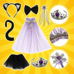 Dieses schwarze Katzenkostüm der Marke KRUZZEL verwandelt jedes Mädchen in eine elegante Katzenlady. Dank der Einheitsgröße für 3–10 Jahre sitzt es perfekt, ist sehr leicht und bequem und eignet sich hervorragend für Karneval, Geburtstagsfeiern und Kinderauftritte. Die Materialien sind angenehm und schränken die Bewegungsfreiheit nicht ein.