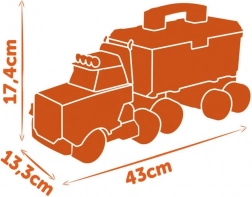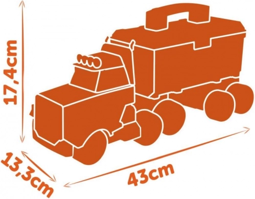 Der Anhänger des LKW dient als robuster Aufbewahrungskoffer mit Griff – alles bleibt übersichtlich an einem Ort und lässt sich überallhin leicht mitnehmen.